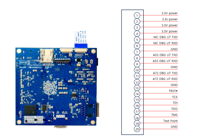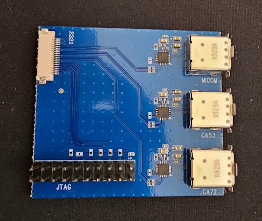 디버그 보드는 JTAG 과 각 코어별 UART 콘솔을 연결할 수 있는 구성으로 되어 있습니다.