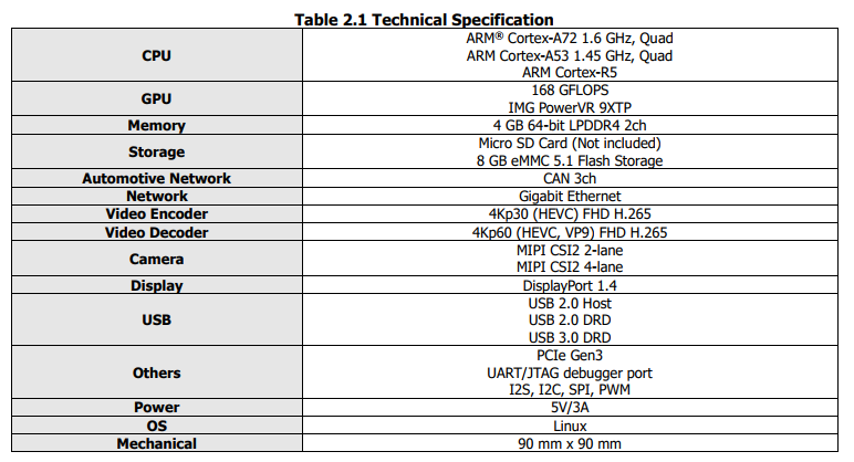 MIPI 4Lane / DP포트 USB2.0 2개 / 3.0 1개 / RJ45 1Gbit