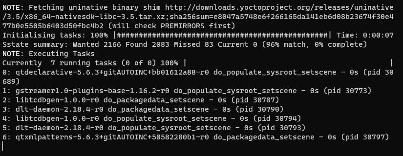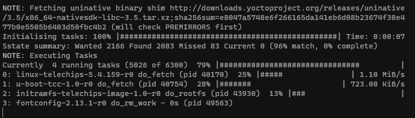 sstate-cache 로 거의 매칭되기 때문에 실질적인 빌드과정은 일어나지 않습니다.