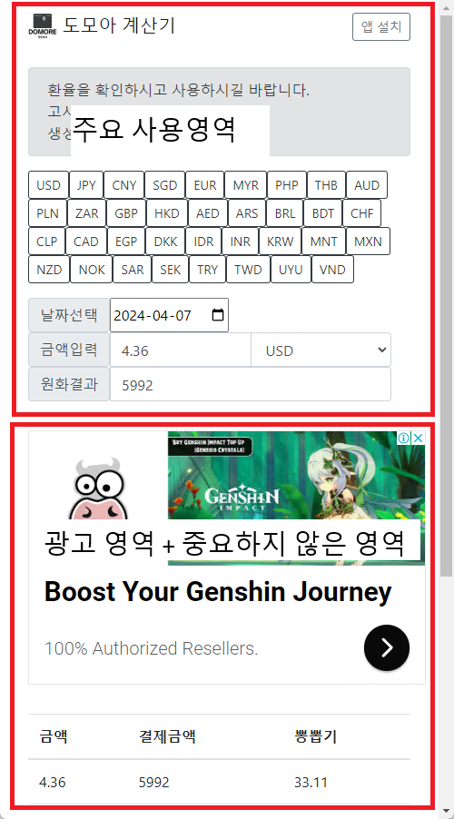 본래 웹을 디자인할때 광고가 보이더라도 실 사용에는 지장이 없도록 구현하였습니다.