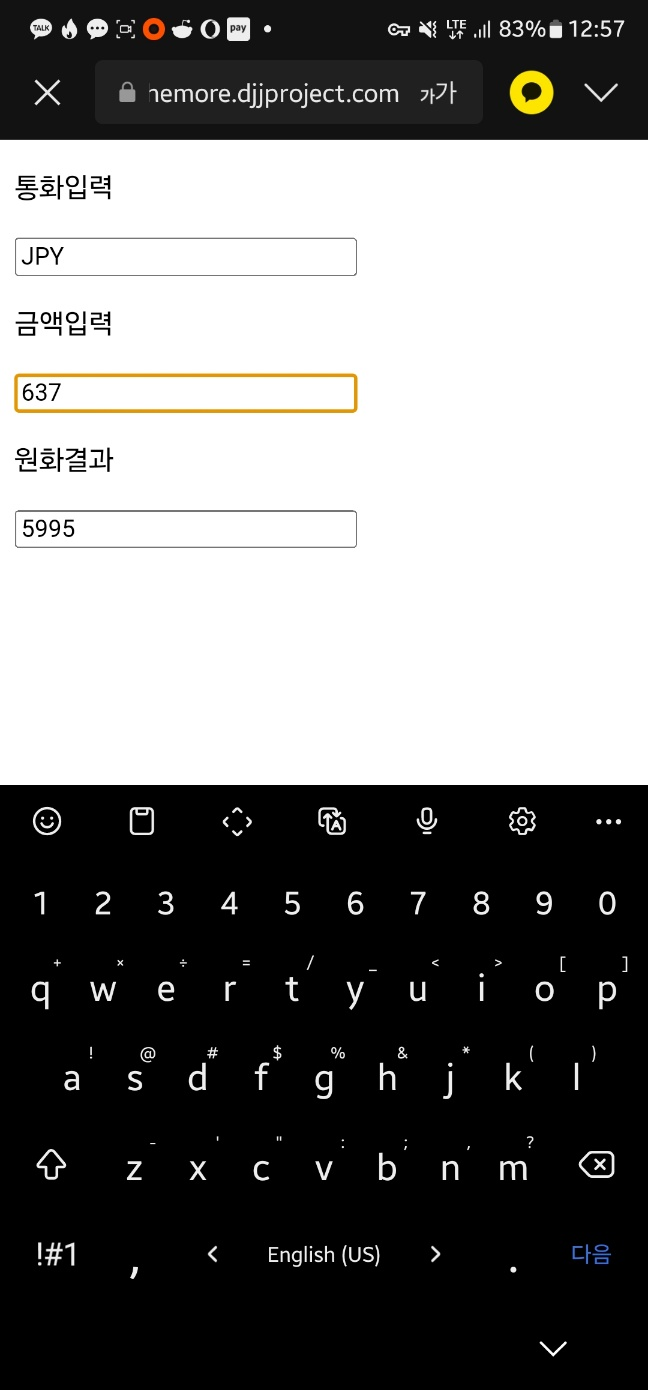 위에 통화를 대문자로 입력하고, 해당 통화의 값을 입력하면 KRW값이 뜨는 그러한 구조였습니다.