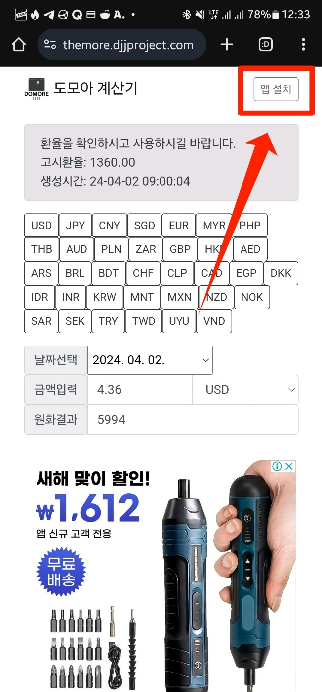 2) 환율을 드롭다운으로 선택하기 귀찮아 주요 통화 추가