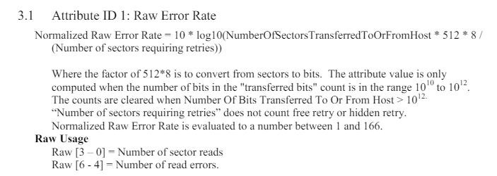 위 글을 참고하고, 시게이트의 SMART 의 데이타 시트를 참고하면