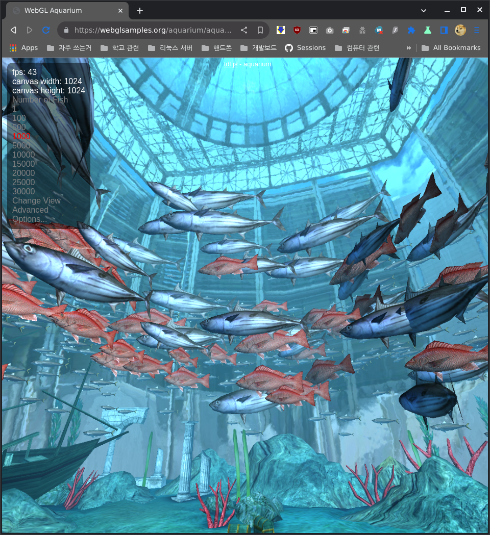 llvmpipe 때 1000마리 7프레임 8프레임 나오던걸 생각하면 크게 성능이 향상되었습니다.
