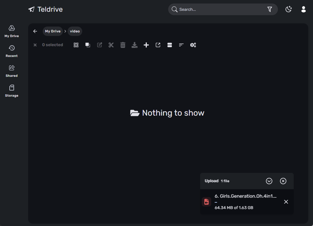| root@debian:/opt/teldrive/rclone# ./rclone --config rclone.conf ls teldrive: 1748339180 video/6. Girls.Generation.Oh.4in1.201002.HDTV.HEVC.2160p.120fps.DTSES.6.1ch.mkv.mp4 |