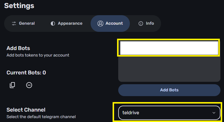 어카운트 메뉴로 이동하여 봇토큰을 넣어줍니다.