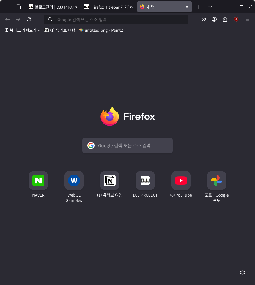 그리고 커스터마이즈 툴바에도 제목관련으로 켜고 끄는 옵션이 존재하지 않음