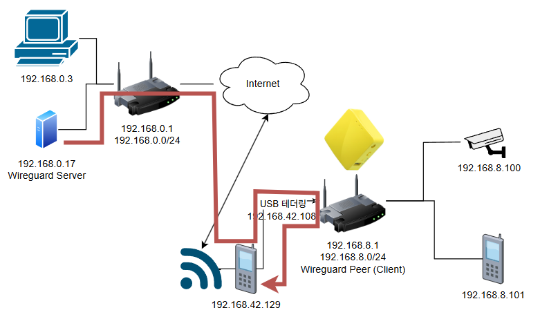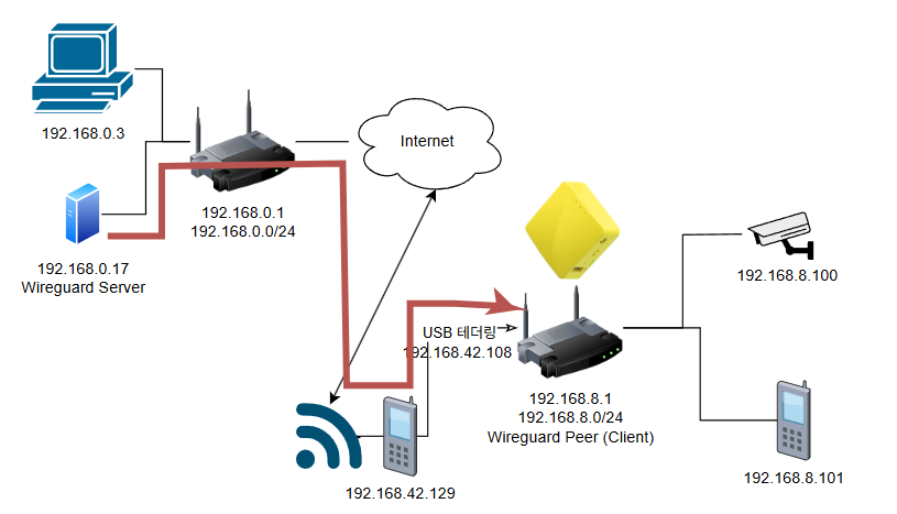 1) Wireguard AllowedIPs 에 192.168.42.0/24 대역 추가