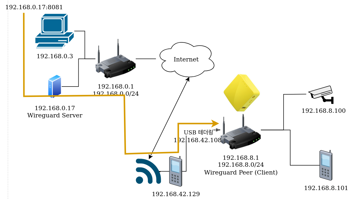다시 현 구조를 살펴보면 192.168.8.0/24 대한 요청은 wg0 를 통해야함을 알 수 있습니다.