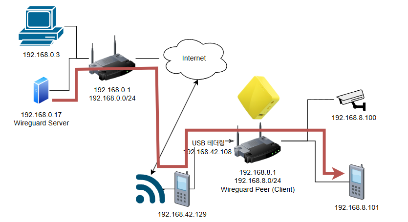 1) Wireguard AllowedIPs 에 192.168.42.0/24 대역 추가