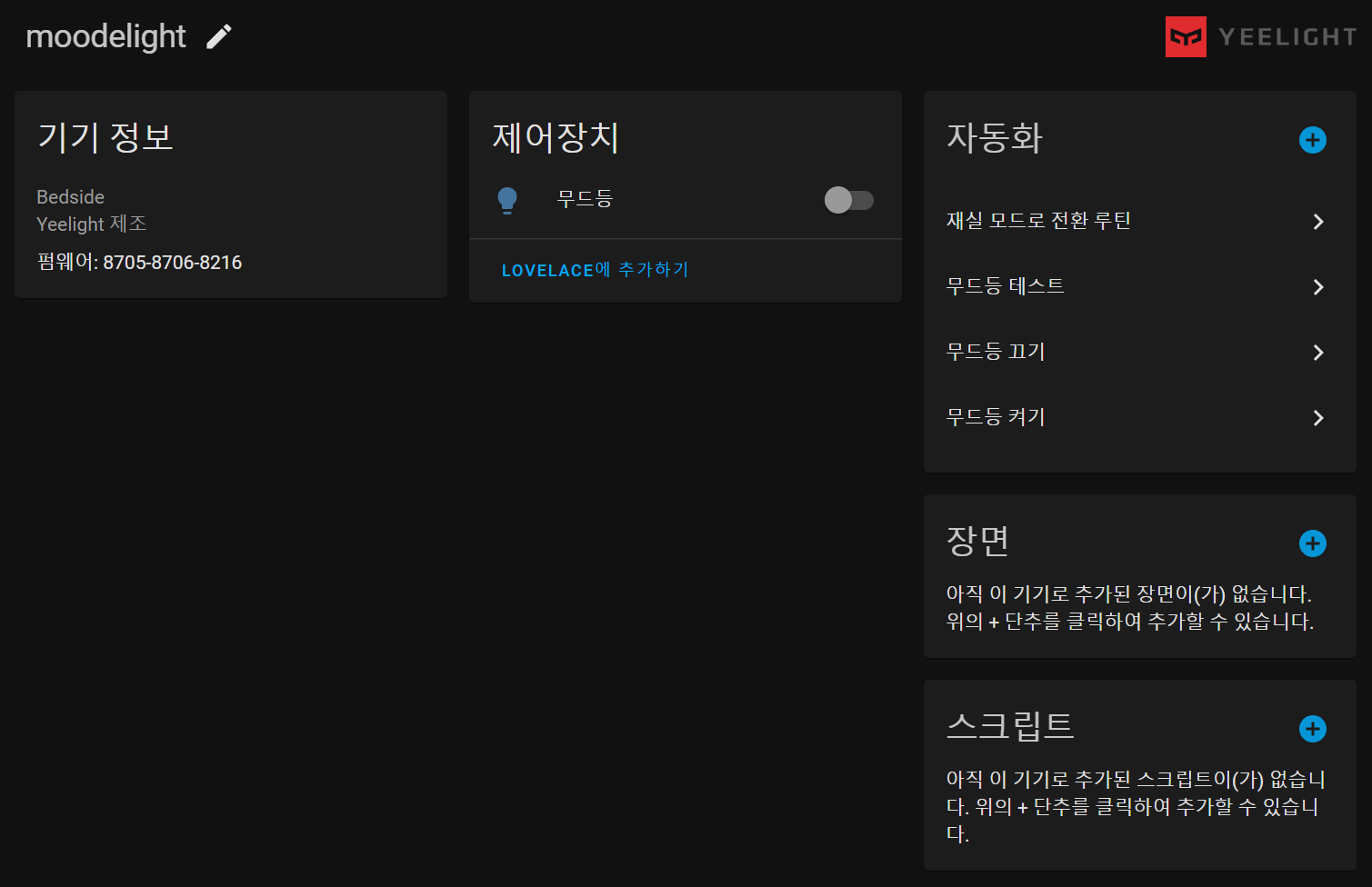 그러면 재실모드 전환 시, 엔티티 재 로딩으로 인해 무드등이 unavailable 이 되었다가 켜졌다가 꺼지는 현상이 생기면서 리셋이 됩니다.